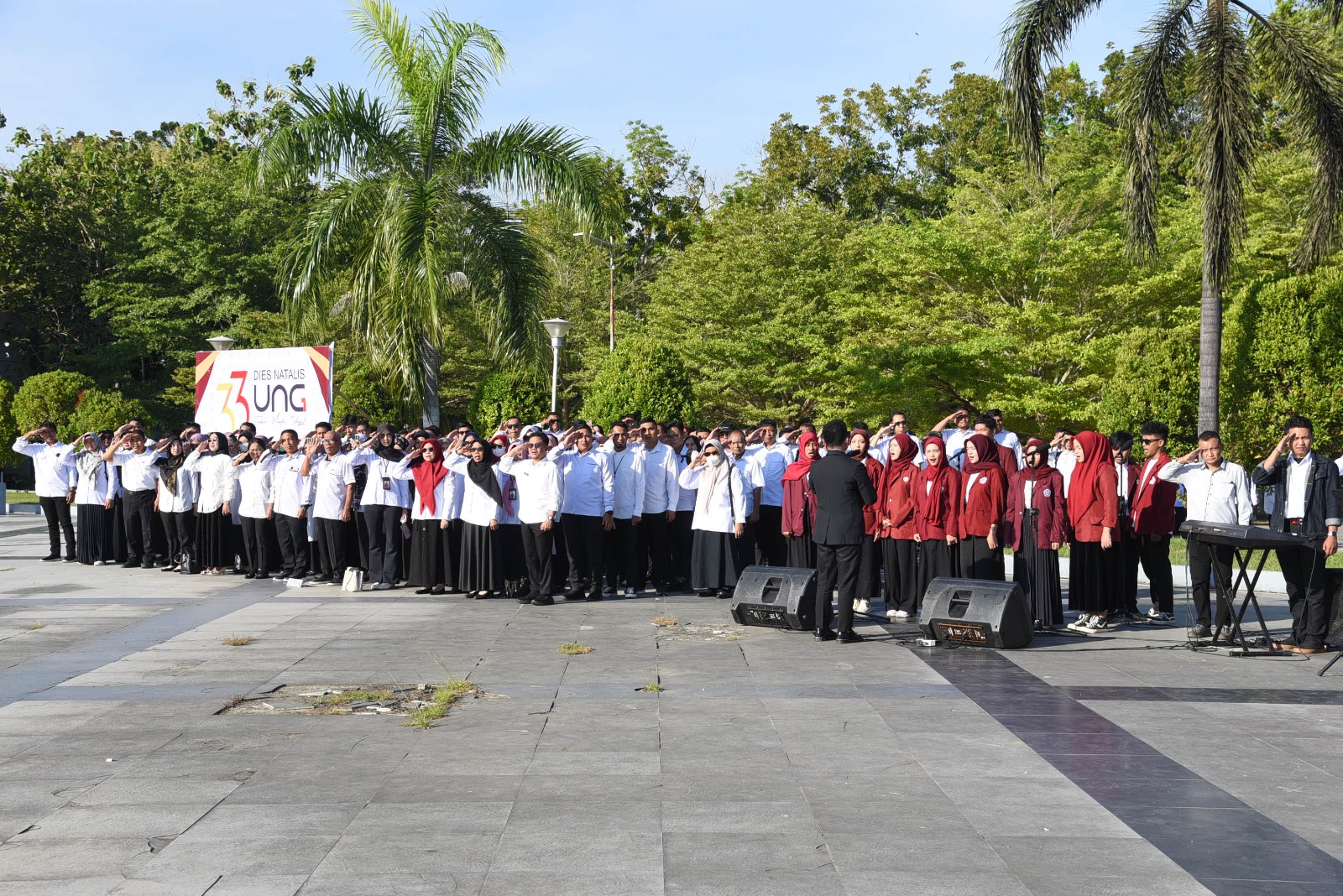 Upacara dipimpin langsung oleh Rektor UNG, Prof. Dr. Ir. Eduart Wolok, ST., MT., IPU., ASEAN Eng. Dalam sambutannya, Rektor menyampaikan ucapan selamat Dies Natalis ke-33 kepada seluruh keluarga besar UNG serta harapan agar UNG terus tumbuh dan berkembang menjadi perguruan tinggi unggul di masa mendatang.