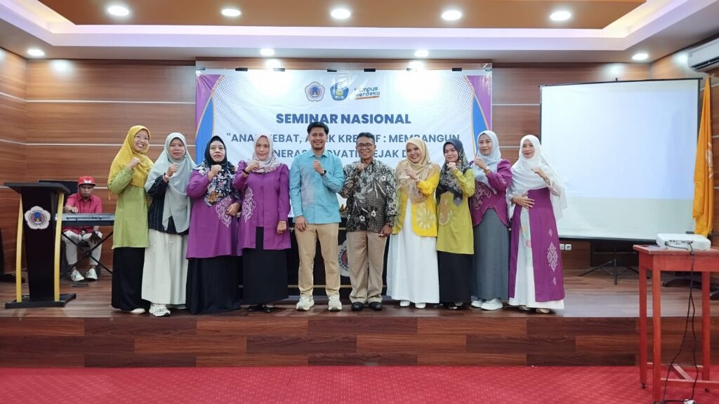 Fip.ung.ac.id, Gorontalo – Kamis (15/5/2025), bertempat di Aula Prof. Kadir Abdussamad, mahasiswa Jurusan Pendidikan Guru Pendidikan Anak Usia Dini (PG-PAUD) Fakultas Ilmu Pendidikan (FIP) Universitas Negeri Gorontalo (UNG) sukses menggelar seminar nasional dengan tema “Anak hebat,Anak kreatif: Membangun Generasi Inovatif Sejak Dini”. Kegiatan ini dibuka langsung oleh Dekan dalam hal ini diwakili oleh Wakil dekan Fakultas Ilmu Pendidikan bidang kemahasiswaan dan alumni Dr. Candra Cuga, S.Pd., M.Pd. Kegiatan ini dihadiri oleh Ketua dan Sekretaris Jurusan PG-PAUD,dosen pengampu mata kuliah kreatifitas dan keberbakatan AUD Sri Wahyuningsi Laiya, S.Pd, M.Pd, Nurul Aini MM Sodik, S.Pd, M.Pd, Elva M. Sumirat, S.Pd, M.Pd serta seluruh Dosen PG-PAUD dan mahasiswa di lingkungan Jurusan PG-PAUD Fakultas Ilmu Pendidikan Universitas Negeri Gorontalo. Seminar nasional ini dengan menghadirkan narasumber Dr. Bambang Sujiono M.Pd melalui offline/tatap muka.
