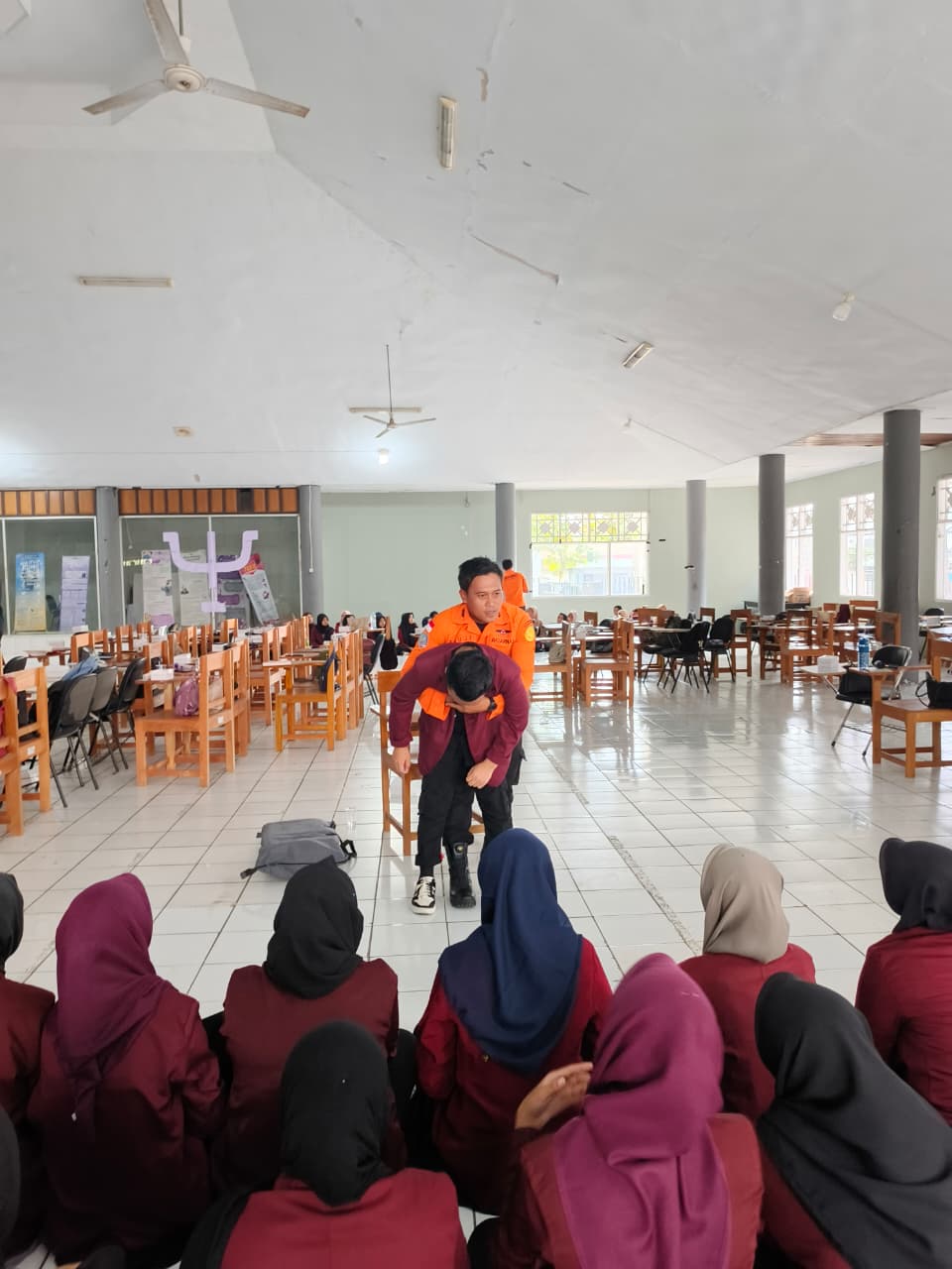 Pada sesi materi, tim Basarnas Gorontalo memberikan pelatihan terkait pertolongan pertama, termasuk penanganan sesak napas, membantu pernapasan pada orang pingsan akibat kekurangan oksigen, serta teknik menangani kasus tersedak. Usai menerima materi, para peserta diberikan kesempatan untuk melakukan praktik langsung menggunakan mannequin dengan pendampingan anggota Basarnas.